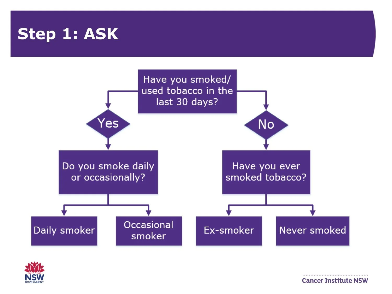 Patients expect their health care provider to talk with them about smoking cessation. This page provides the basic training resources needed to complete the 3As model of care in your service.