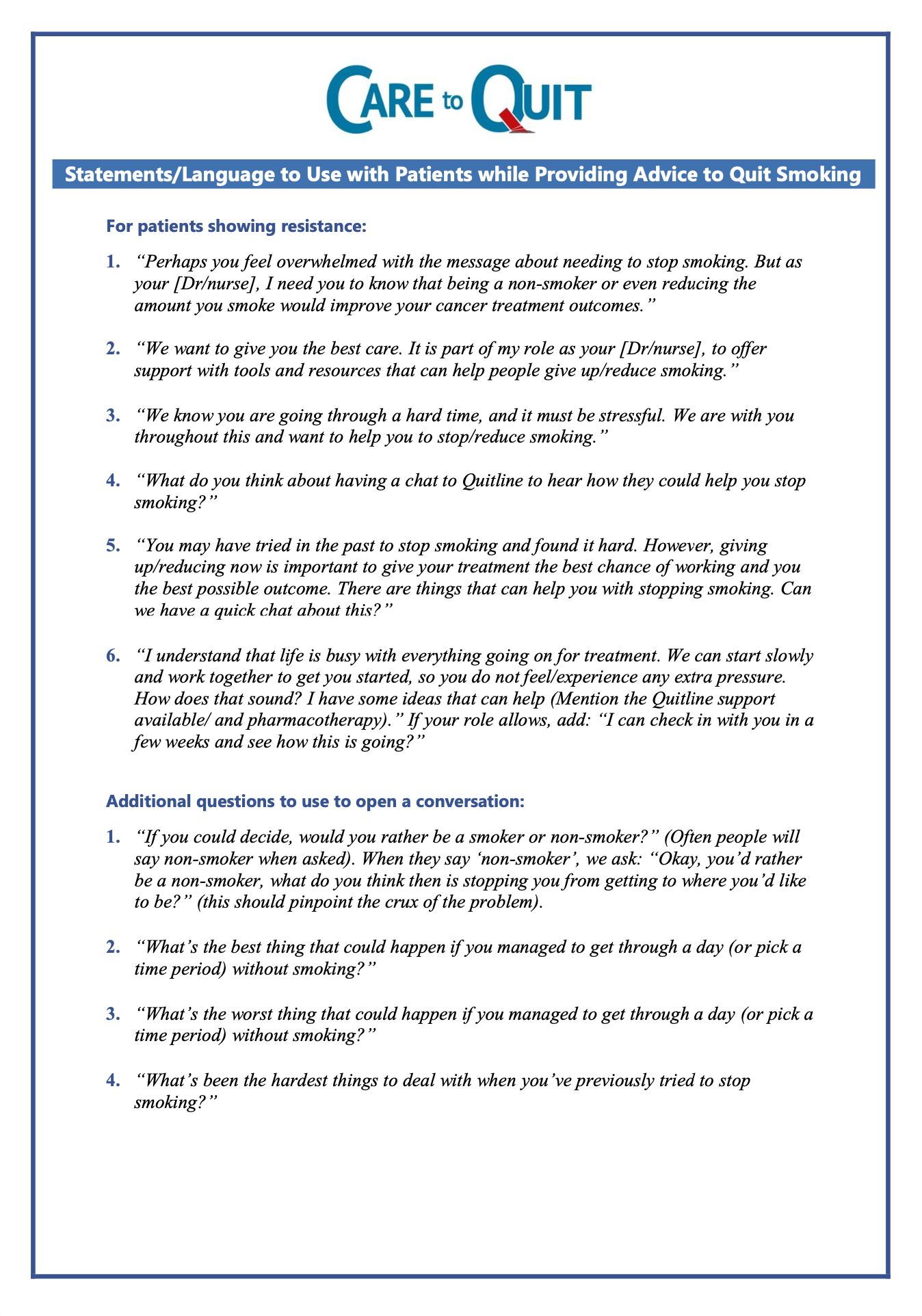 Overcoming Challenging Situations in the Provision of Smoking Cessation Care